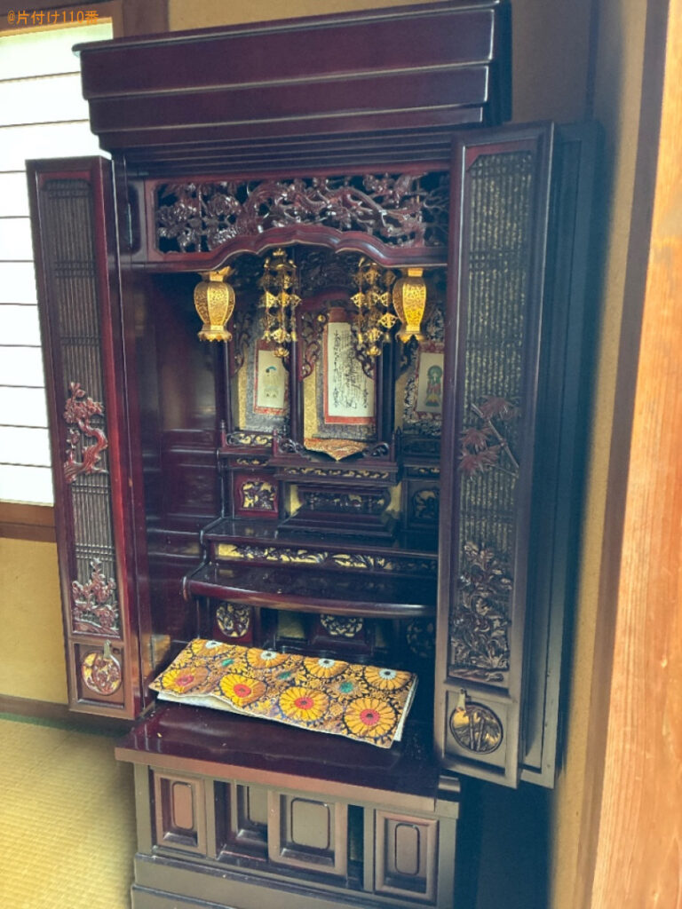 | 担当のコメント | 仏壇の処理にお困りのお客様からご相談いただきました。御霊抜きもできることがご依頼の決め手になったようです。片付け110番では、最短即日お伺いさせていただきます。不用品にお困りの際はまたいつでもご相談ください。 |